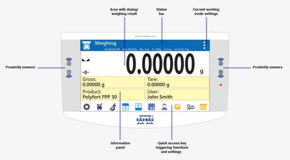 Individuálny displej radu RADWAG X7 ponúka priamy prístup k výsledkom práce a ďalším dôležitým informáciám priamo z domovskej obrazovky.