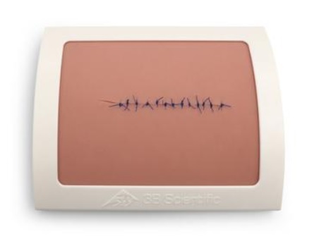 Cvičný model kože na nácvik šitia. Model cvičnej kože 3B na nácvik šitia dokonale demonštruje anatomickú štruktúru vrstiev ľudskej kože vrátane vrchnej časti pokožky, väzivového tkaniva a spodne vrstvy pokožky (epidermis, dermis a hypodermis), aby vytvoril realistický pohmatový/haptický zážitok z tréningu.Použitím podložky na umiestnenie modelu môžete využívať napätie kože pre realistickejší zážitok zo šitia. Toto napätie kože simuluje smer orientácie podkladových kolagénových vlákien. Ostrým skalpelom je možné vyrezať rany tak, aby zodpovedali požadovanej hĺbke a umiestneniu na podložke. Šijacie materiály a sponkový materiál možno z rezov odstrániť, čo umožňuje opakované použitie trenažéra. Materiál je veľmi robustný, vysoko kvalitný, určený na dlhodobé používanie.