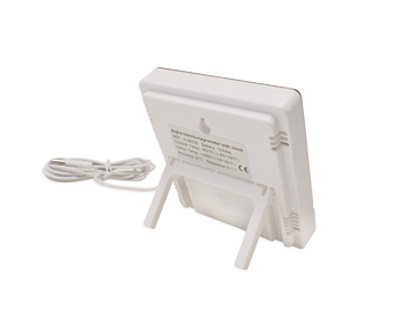Teplomer-vlhkomer na meranie vnútornej/vonkajšej teploty okolia a vnútornej relatívnej vlhkosti.Má 12/24-hodinový časový formát s budíkom.