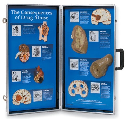 Podrobné tabule s modelmi, ktoré jasne ukazujú dôsledky užívania drog na naše orgány. Panely sú uložené v prenosnom kufríku. Rozmer po rozložení 71x68 cm.