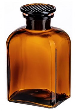 - Fľaša hranatá, hnedá, širokohrdlá so zabrúsenou zátkou