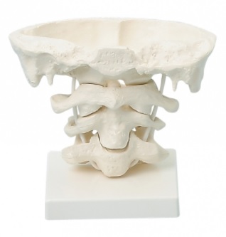 Model krčných stavcov, 2-násobná veľkosť. Výučbový model na demonštrovanie pohybu v krčnej oblasti anatomicky správnym spôsobom, ktorý obsahuje minimálne modely krčných stavcov C1, C2 a C3, ktoré sú upevniteľné na stojane.