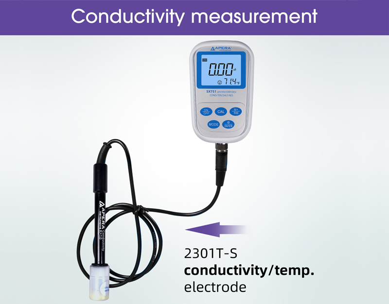 Súčasťou súpravy je pH/teplotná elektróda 201T-S, ktorá umožňuje rýchle a presné meranie pH vďaka lítiovo-sklenenej membráne a keramickej membráne.Elektróda na meranie vodivosti/teploty 2301T-S je založená na unikátnej technológii elektród BPB (Brush-resistant Platinum Black) a vyznačuje sa presnosťou a širokým rozsahom merania (0-200 mS/cm).