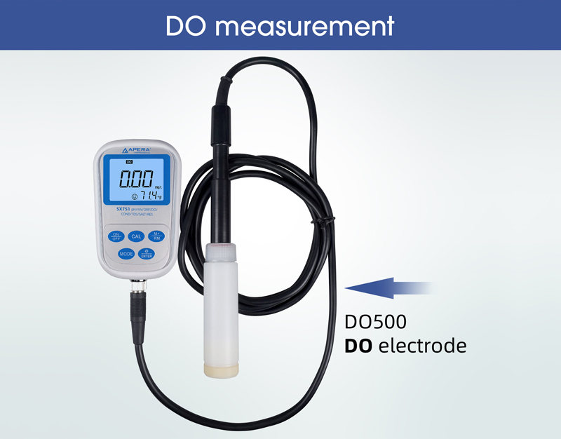 Na meranie kyslíka sa dodáva polarografická elektróda DO500, ktorá je polarizovaná a pripravená na meranie už po 5 minútach. Vďaka svojmu spôsobu prevádzky, automatickej kompenzácii teploty a slanosti, ako aj manuálnej kompenzácii tlaku vzduchu, umožňuje elektróda rýchle a presné merania DO.