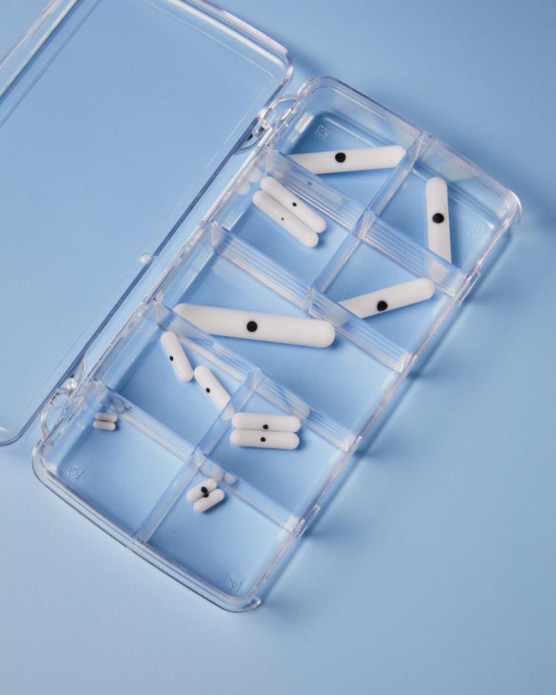 Turbo miešacie tyče používajú silnejšie magnety zriedkavých zemín (Samárium-Kobalt) a sú identifikované inertnou čiernou značkou.Vyrobené z PTFE triedy FDA a USP triedy VI (panenská kvalita).