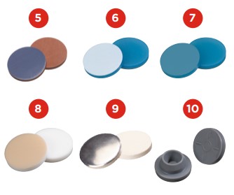 Výber správnej septy závisí od aplikácie. Mnohé septy sú na jednej strane potiahnuté PTFE. PTFE je vysoko odolný voči mnohým chemikáliám a tvorí inertnú hranicu medzi vzorkou a základným materiálom septy.Základný materiál septy má rôzne fyzikálne a chemické vlastnosti, ako je teplotná odolnosť, opätovné uzatváranie, čistota, tvrdosť a hrúbka.