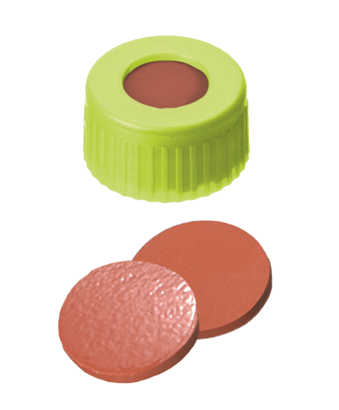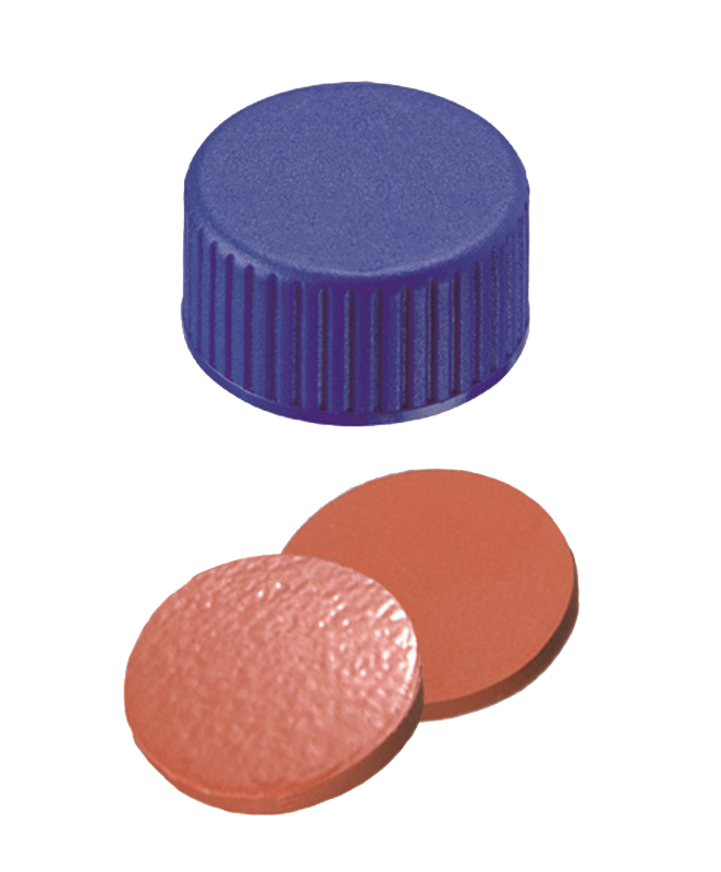 Uzávery s krátkym závitom ND9 sú vyrobené z odolného polypropylénu (PP) a dodávajú sa s integrovaným septom z rôznych materiálov.Tieto modely sú vybavené septom z prírodného kaučuku (Naturkautschuk) potiahnutým PTFE (TEF) fóliou.