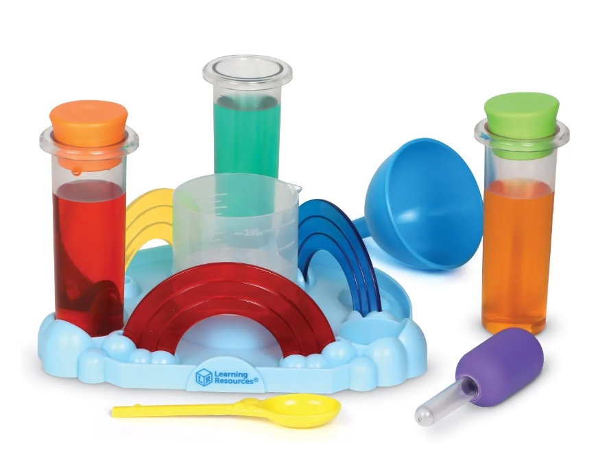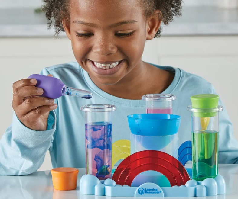 Farebné šošovky, skúmavky, kadička, lievik a kvapkadlo sú navrhnuté pre malé detské rúčky, ľahko sa držia a pomáhajú deťom rozvíjať jemnú motoriku pri experimentovaní. Umožňujú vykonať 10 zábavných vedeckých experimentov pre deti na rozvoj pozorovania, objavovania, kreativity a ďalších STEM zručností.Všetky komponenty sú vyrobené z odolných materiálov, ktoré sa ľahko čistia. Po skončení experimentovania sa diely skladujú vnútri podstavca.